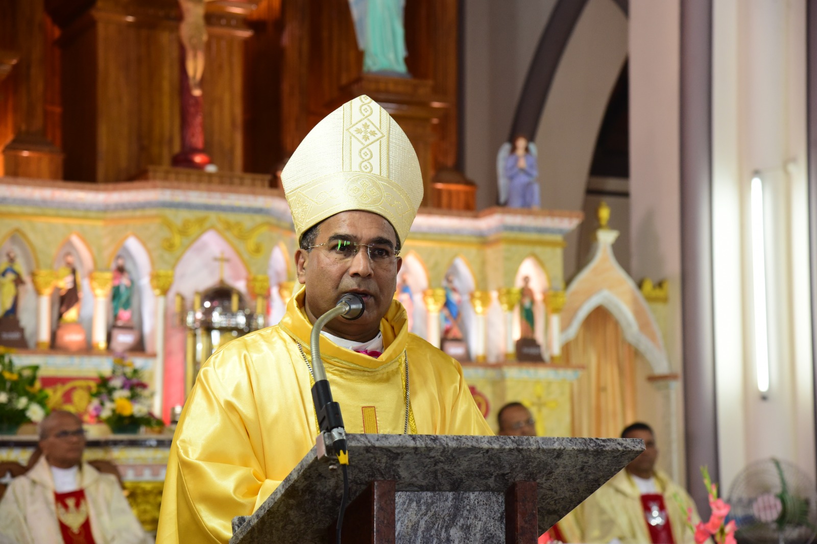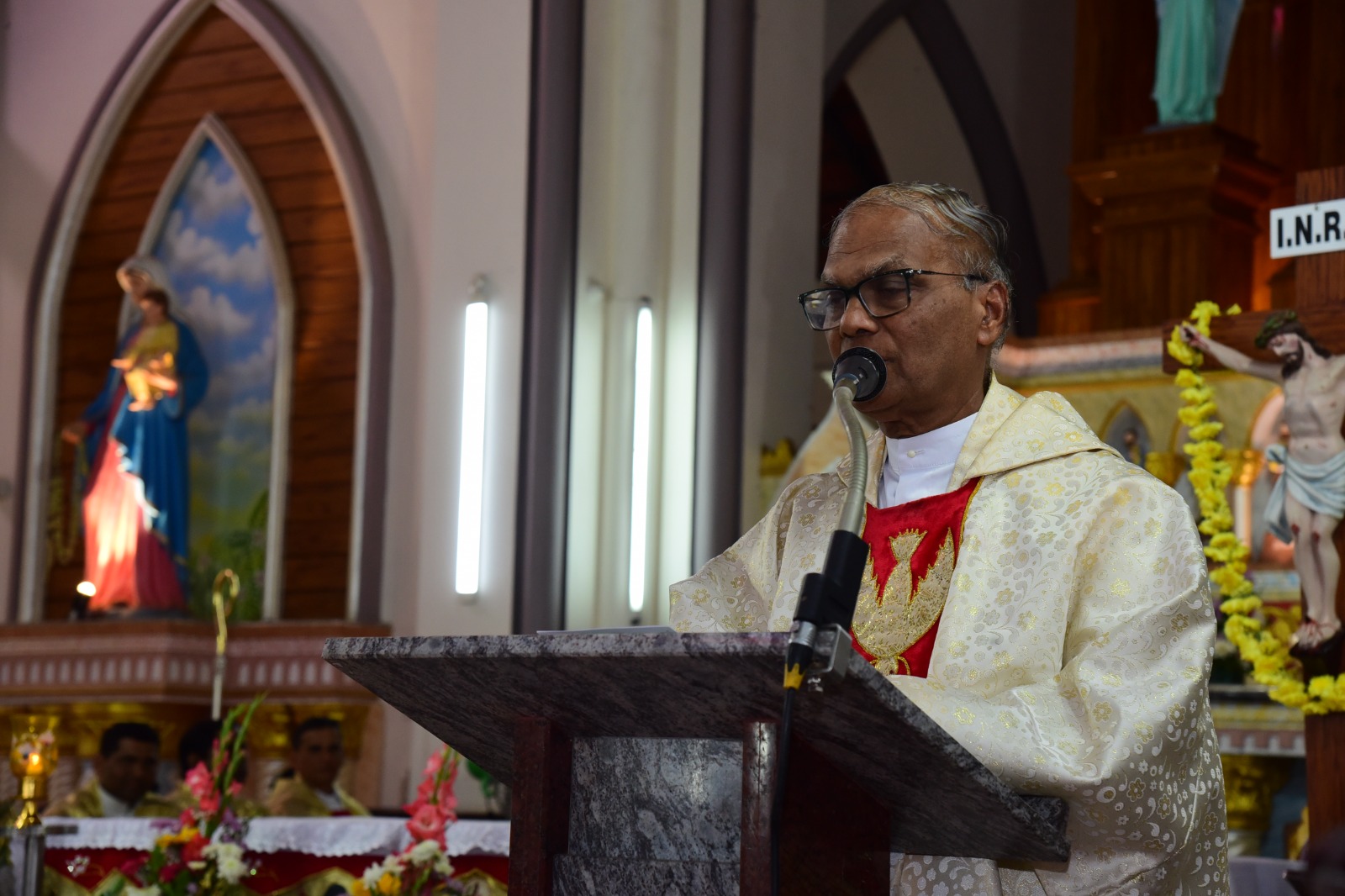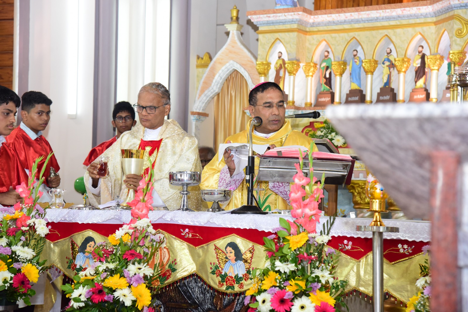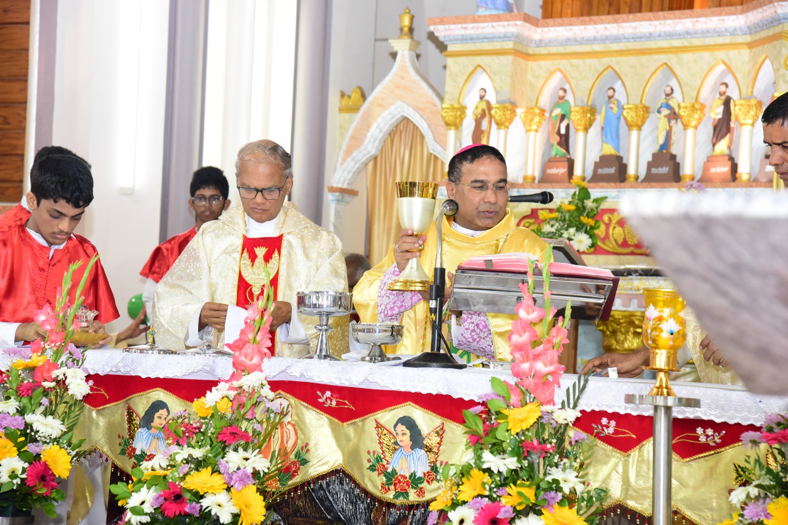 Rt. Rev. Dr. Duming Dais, Bishop of Karwar and Shimoga Diocese, served as the main celebrant of the solemn High Mass. The liturgical celebration was graced by the presence of Vicar General Rev. Fr. Ferdinand Gonsalves and numerous priests from the Kallianpur Deanery, who concelebrated the Mass alongside the Bishop.