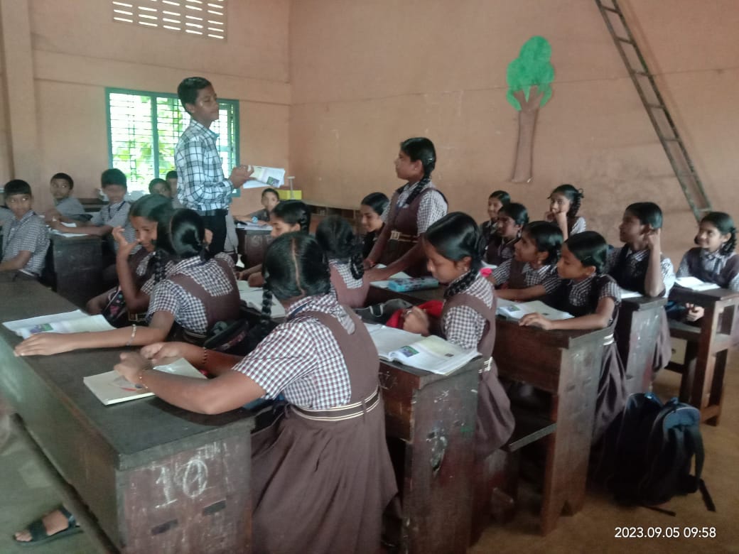 The day commenced with an extraordinary twist - the first period of the day was handed over to the 10th standard students, who took on the roles of teachers. These young instructors, embraced their responsibilities with gusto and delivered exceptional classes for students ranging from std I to std IX. Their efforts didn't go unnoticed, as both teachers and fellow students applauded their remarkable performance.