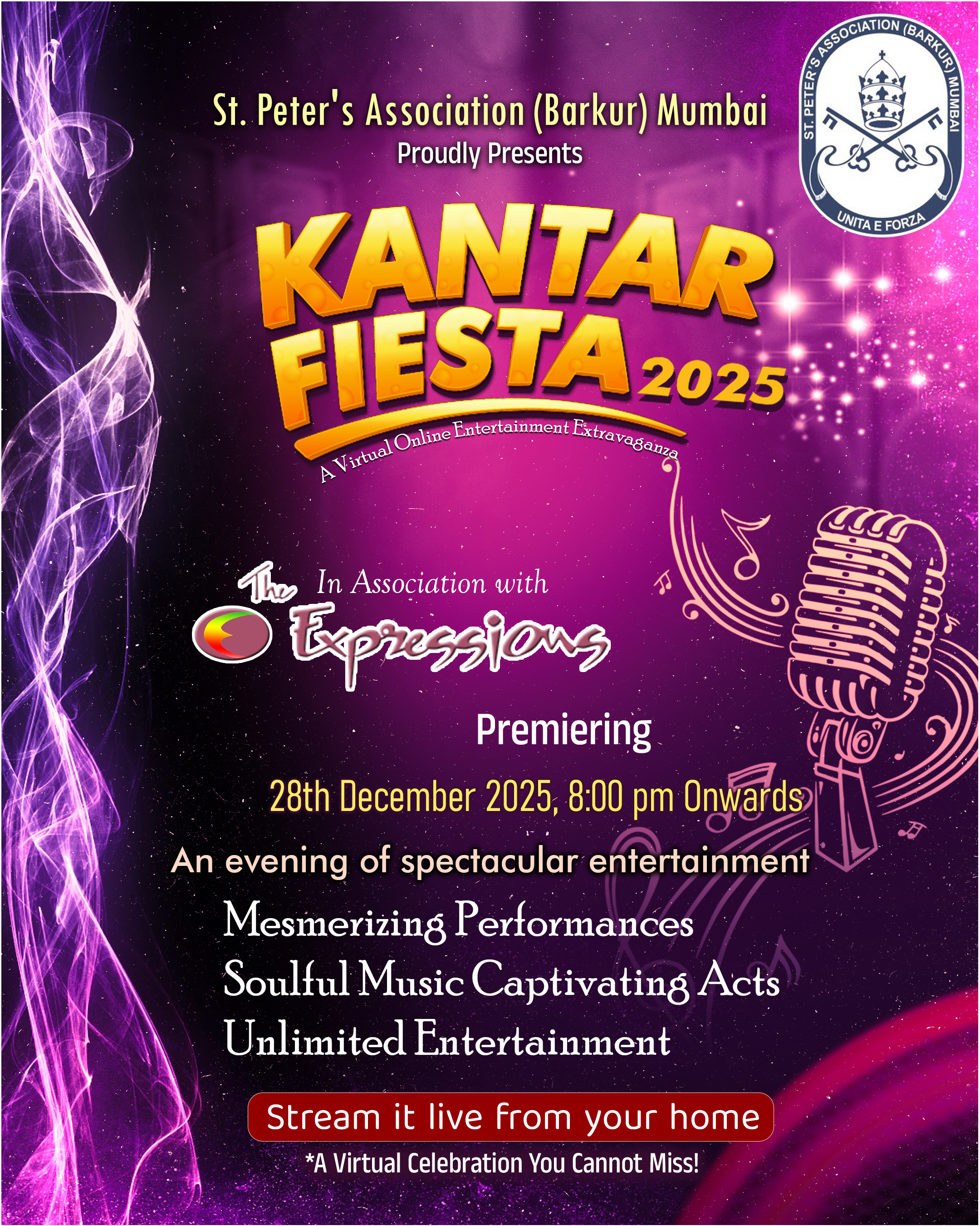 With immense joy, pride and festive fervour, St. Peter’s Association (Barkur), Mumbai, warmly welcomes all Barkurians across the globe to its 5th Konkani Online Musical Extravaganza – “Kantar Fiesta 2025”, presented in association with “The Expressions”, as part of the celebration of its 37th Annual Day, on Sunday, 28th December 2025 at 8.00 pm.