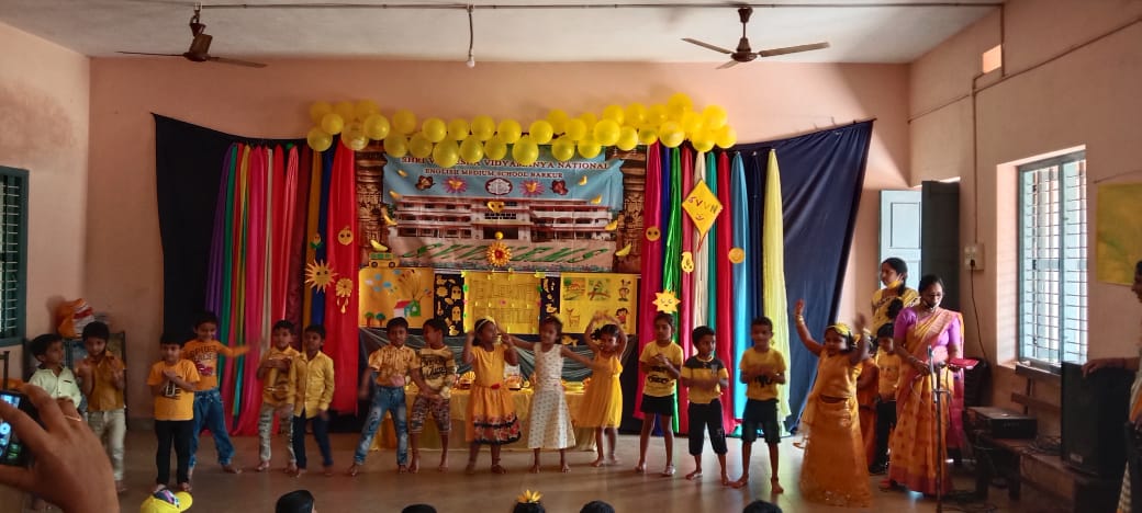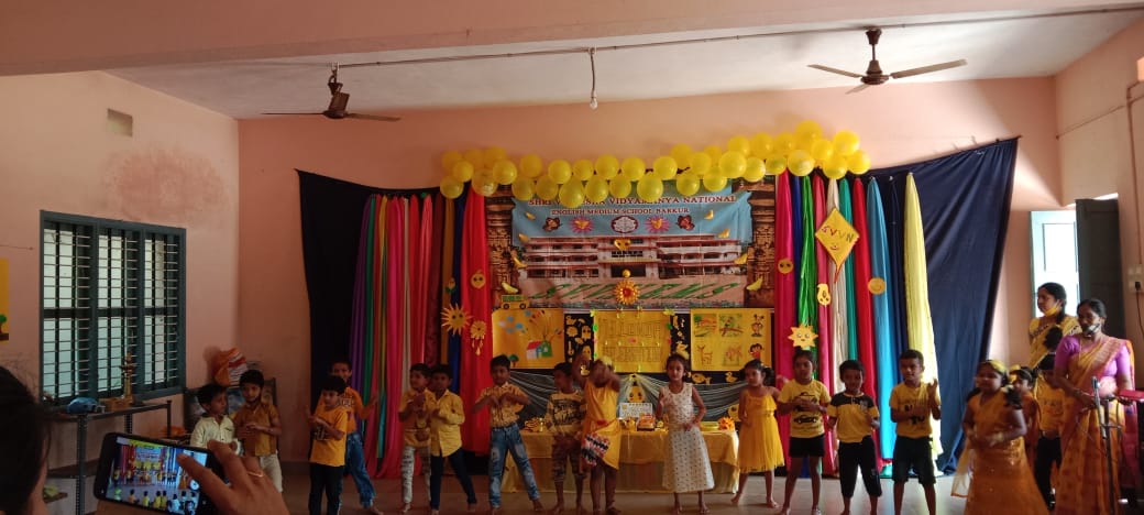 On 12th January 2022, Yellow Day is celebrated by the KG tiny tots of S.V.VN English Medium School, Herady. All the kids wore yellow outfits and presented a beautiful programme. Programme was compeared by Abhinav, Sanidhya, Adwik, Sanidhya from KG. The kids sang Vakratunda Mahakaya as a prayer.